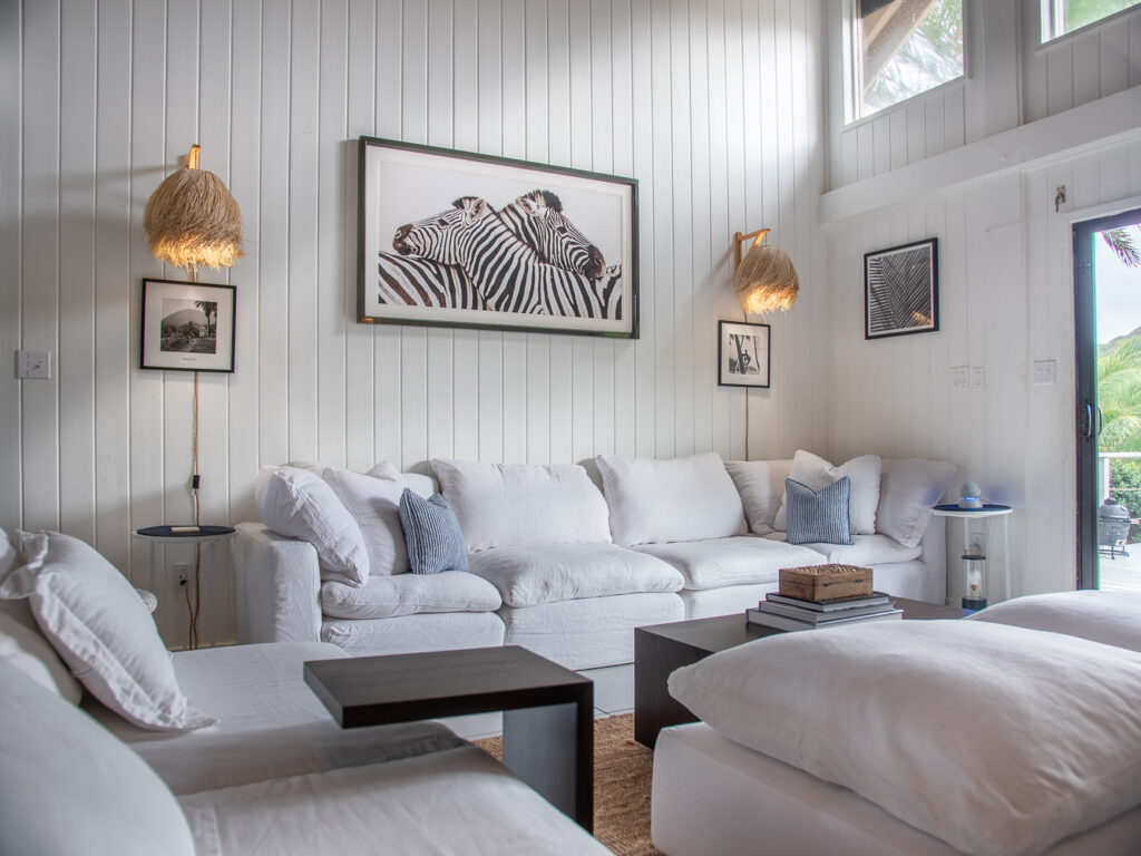 Each room boasts a private bathroom, and the bunk room accommodates four, ideal for families or multigenerational gatherings. The plush Restoration Hardware “cloud” sofas invite you to sink in and savor the moment. Your coastal escape begins at The Seahouse, where luxury, adventure, and tranquility converge.